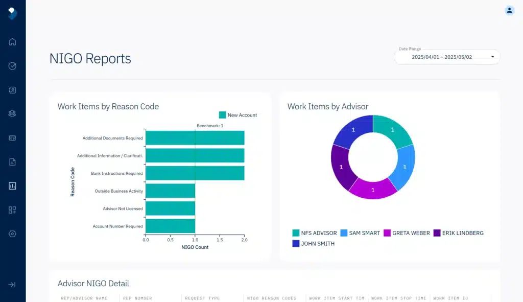 NIGO Rate with Docupace: 8% Not In Good Order – The percentage of applications that do not get fully processed the first time due to errors or missing information.